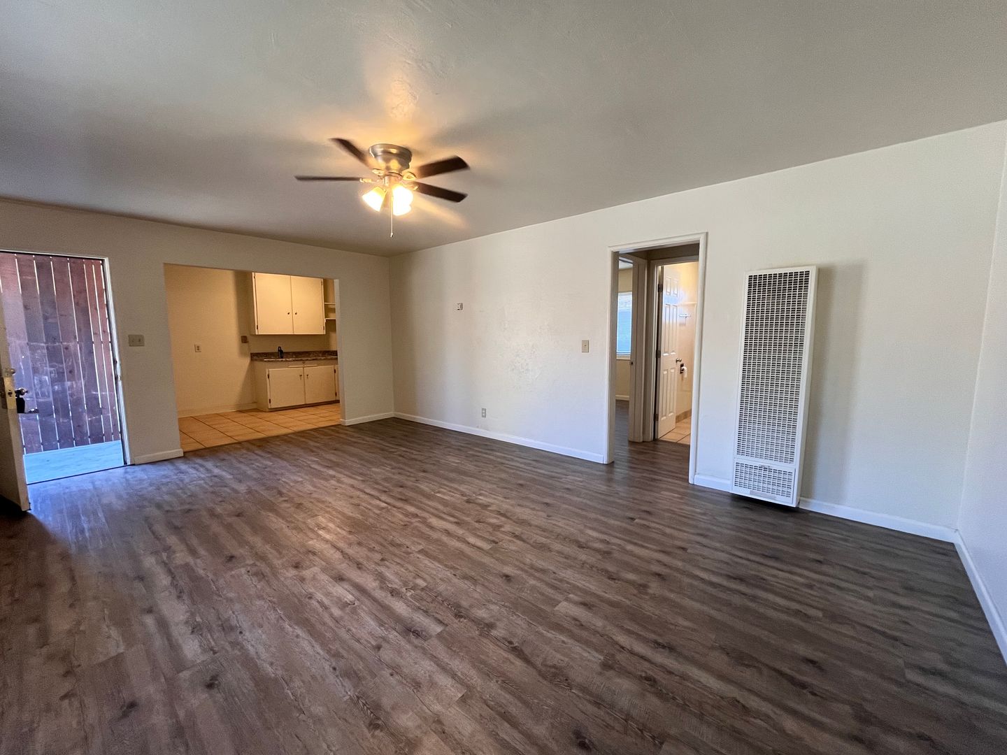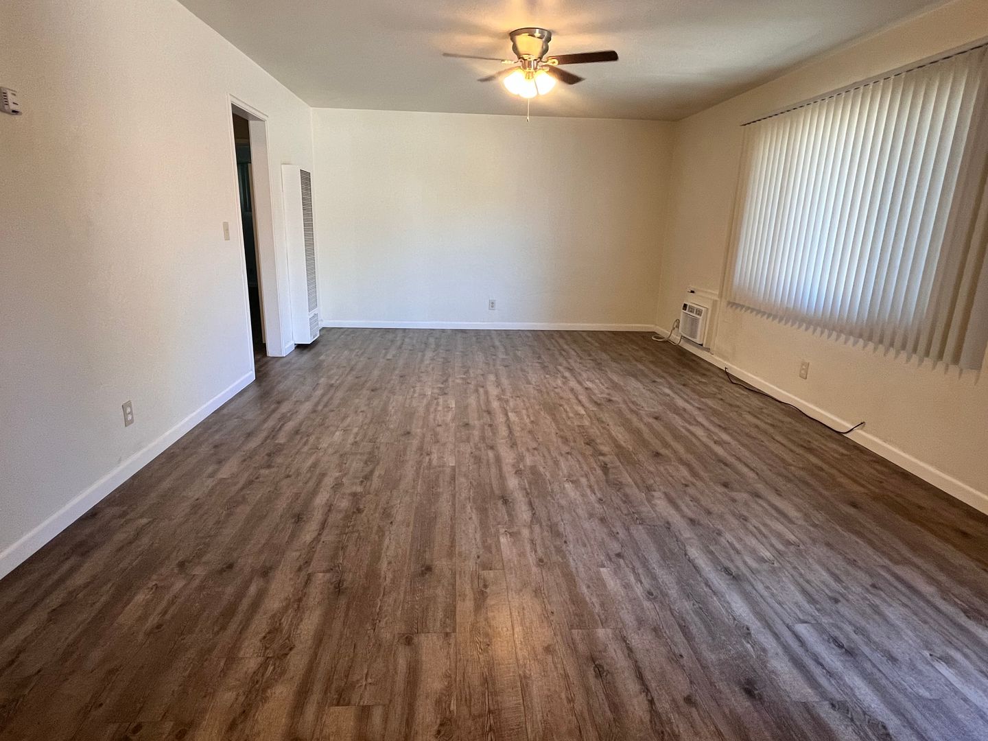 This spacious two-bedroom, one-bathroom end unit offers two spacious bedrooms, a wall-mounted gas heater, window AC, and ceiling fans throughout for year-round comfort. The unit features a dedicated laundry room with washer and dryer hookups, a private backyard, and a one-car carport with an oversized storage room. The kitchen includes a gas stove, refrigerator, and dishwasher for your convenience.