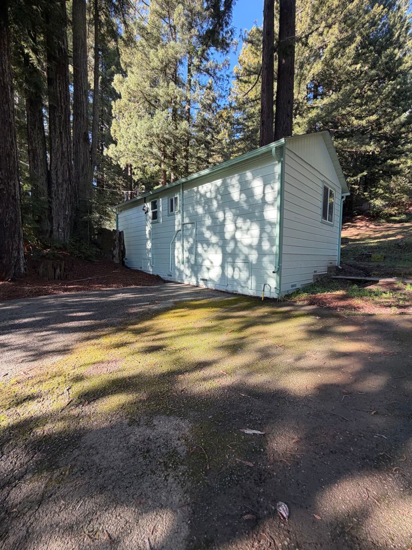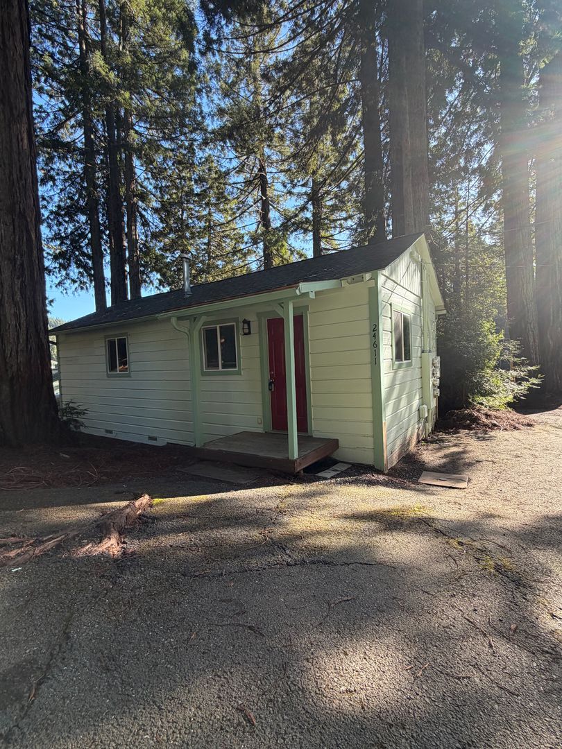Escape to the quiet beauty of Brooktrails in this charming 1-bedroom, 1-bath cabin tucked beneath towering redwoods. This cozy yet spacious home offers a large bedroom with a walk-in closet, providing both comfort and storage in a serene forest setting.