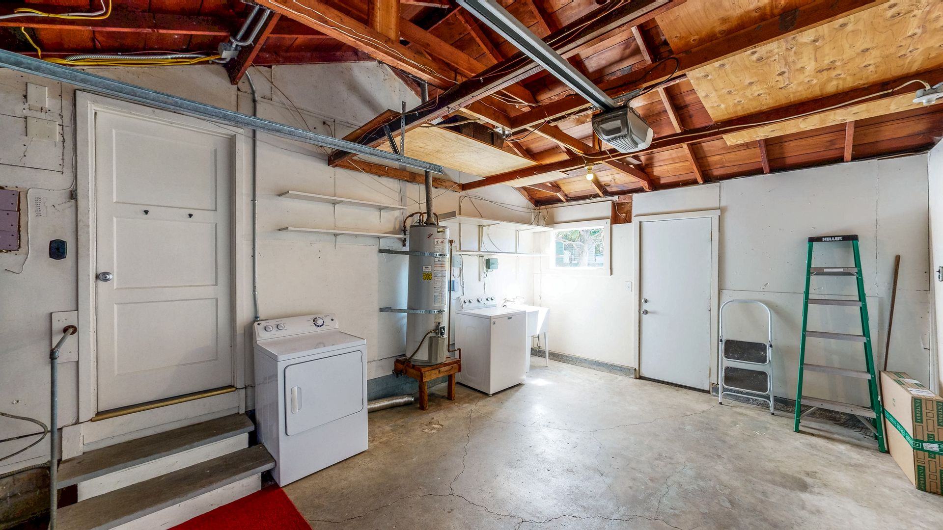 The home offers a one-car garage and a generously sized driveway, providing ample parking. A washer and dryer are located in the garage and are provided as-is for tenant convenience. Landscaping services are included in the rent, ensuring the outdoor spaces remain well-maintained year-round.
