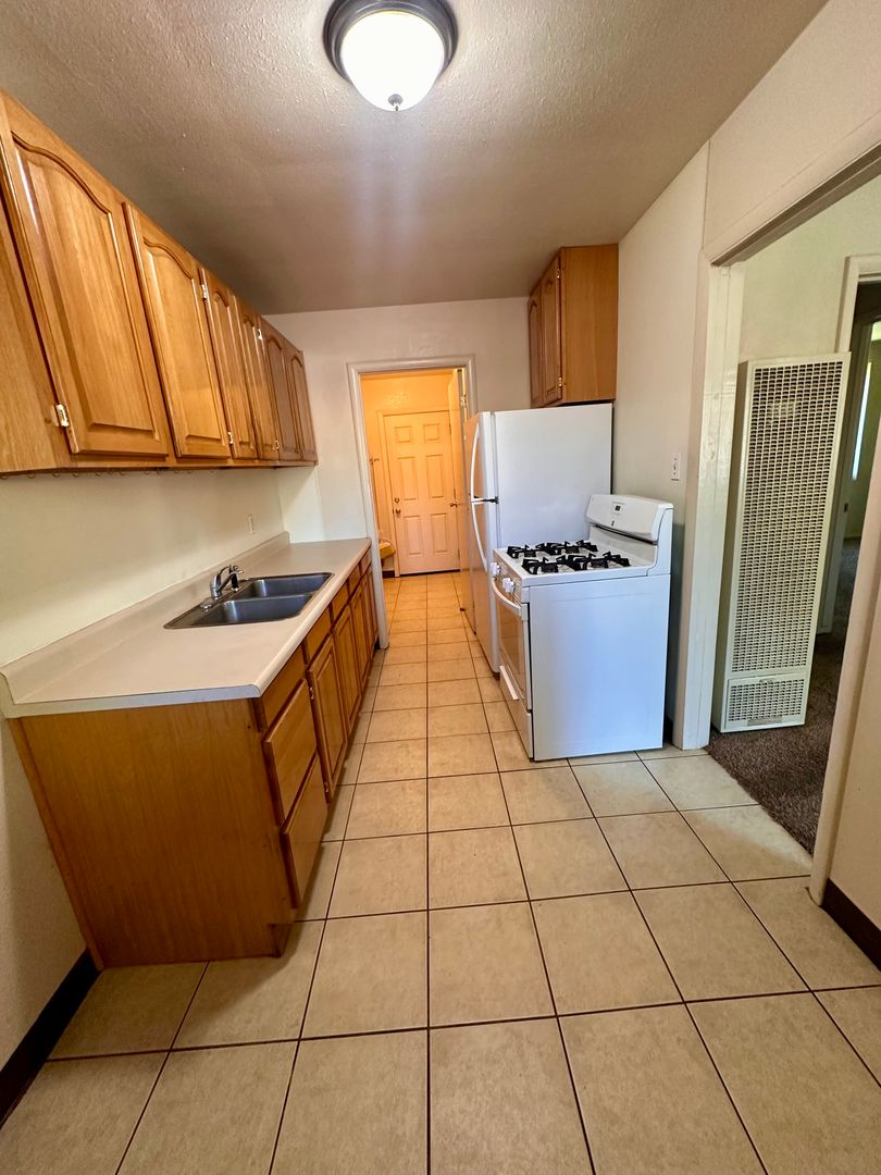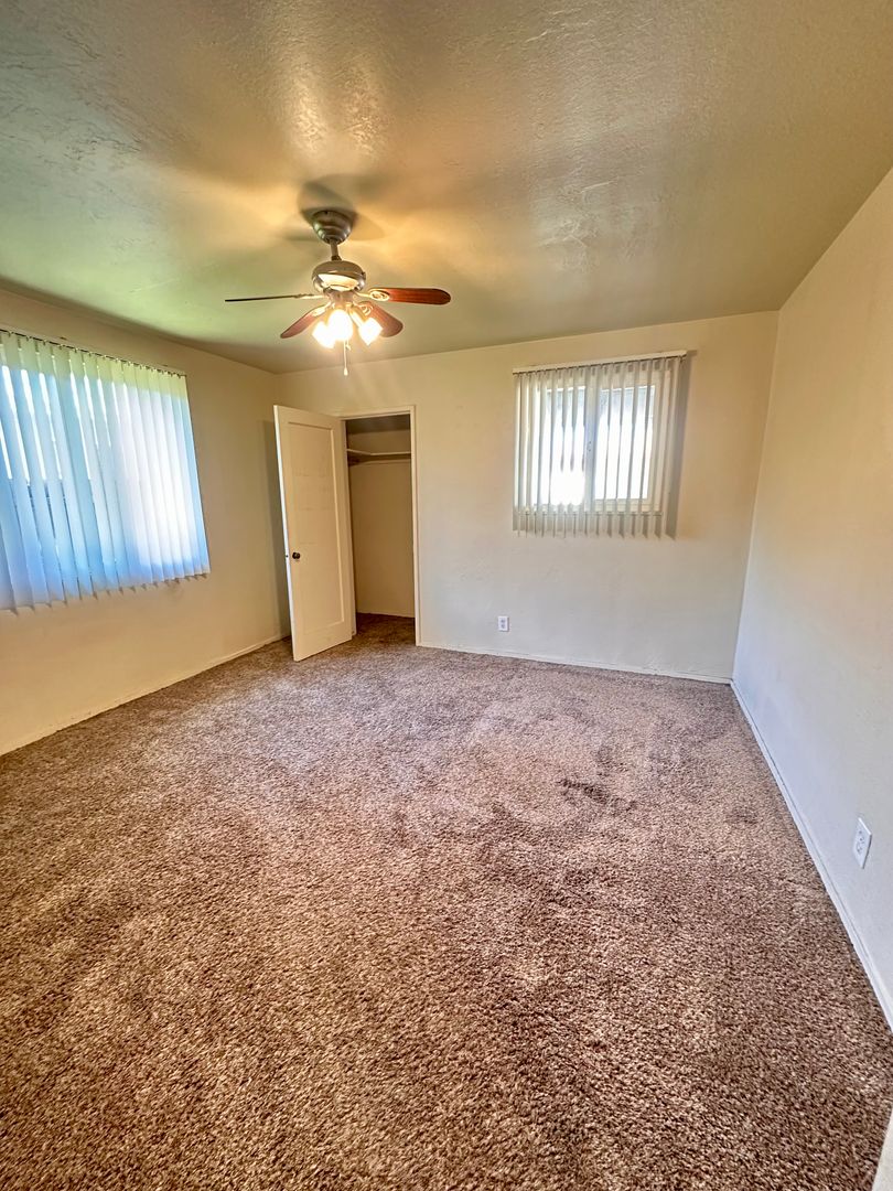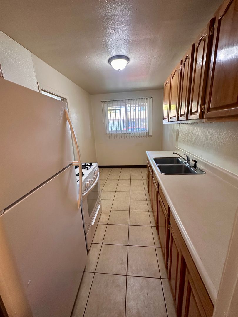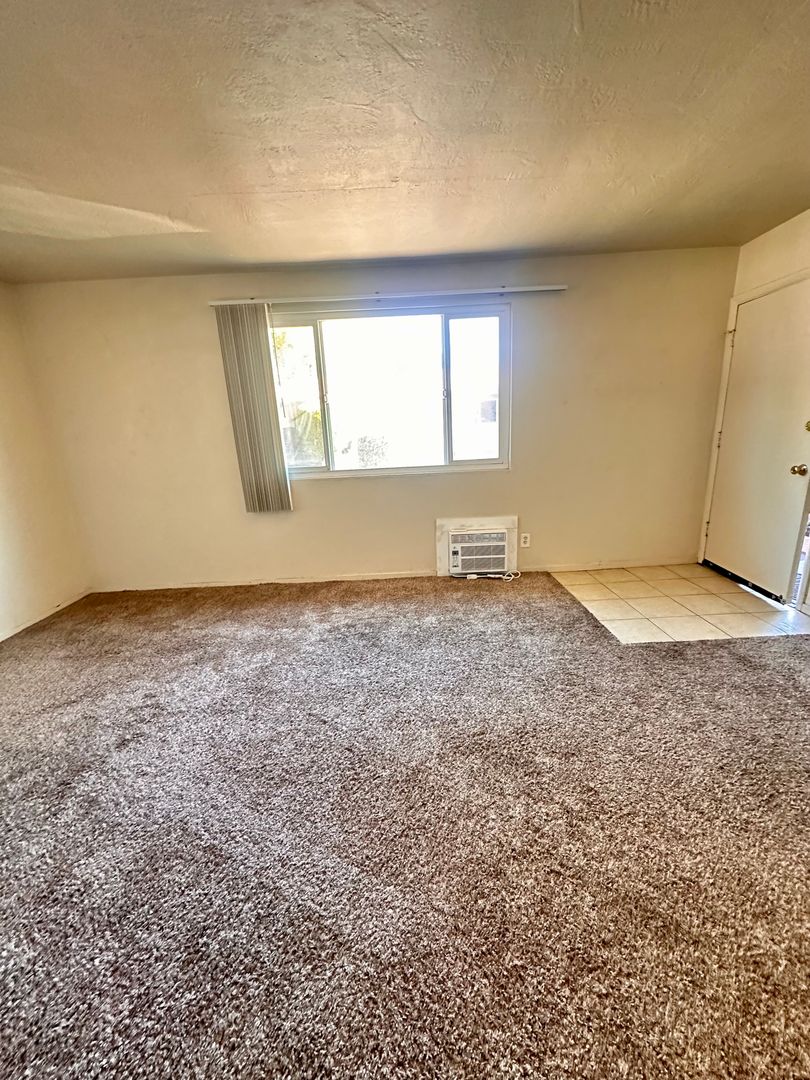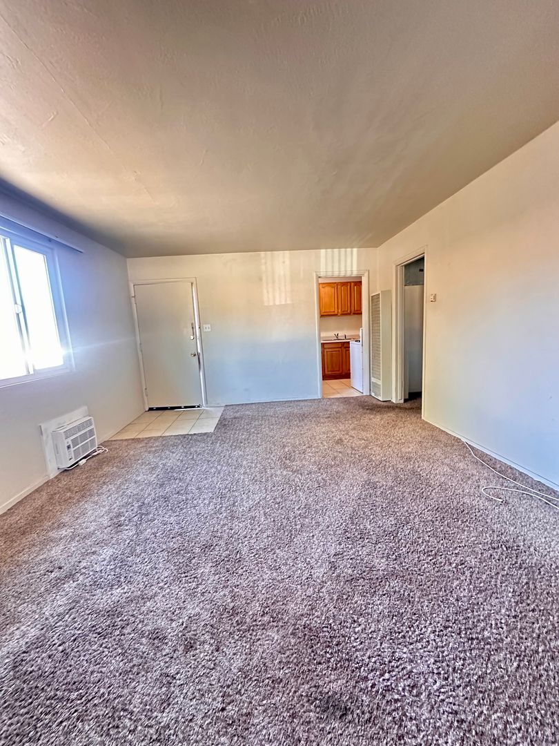 This spacious one-bedroom, one-bathroom end unit offers a spacious bedroom, a wall-mounted gas heater, window AC, and ceiling fans throughout for year-round comfort. The unit features a dedicated laundry room with washer and dryer hookups, a private backyard, and a one-car carport with an oversized storage room. The kitchen includes a gas stove, refrigerator, and dishwasher for your convenience.