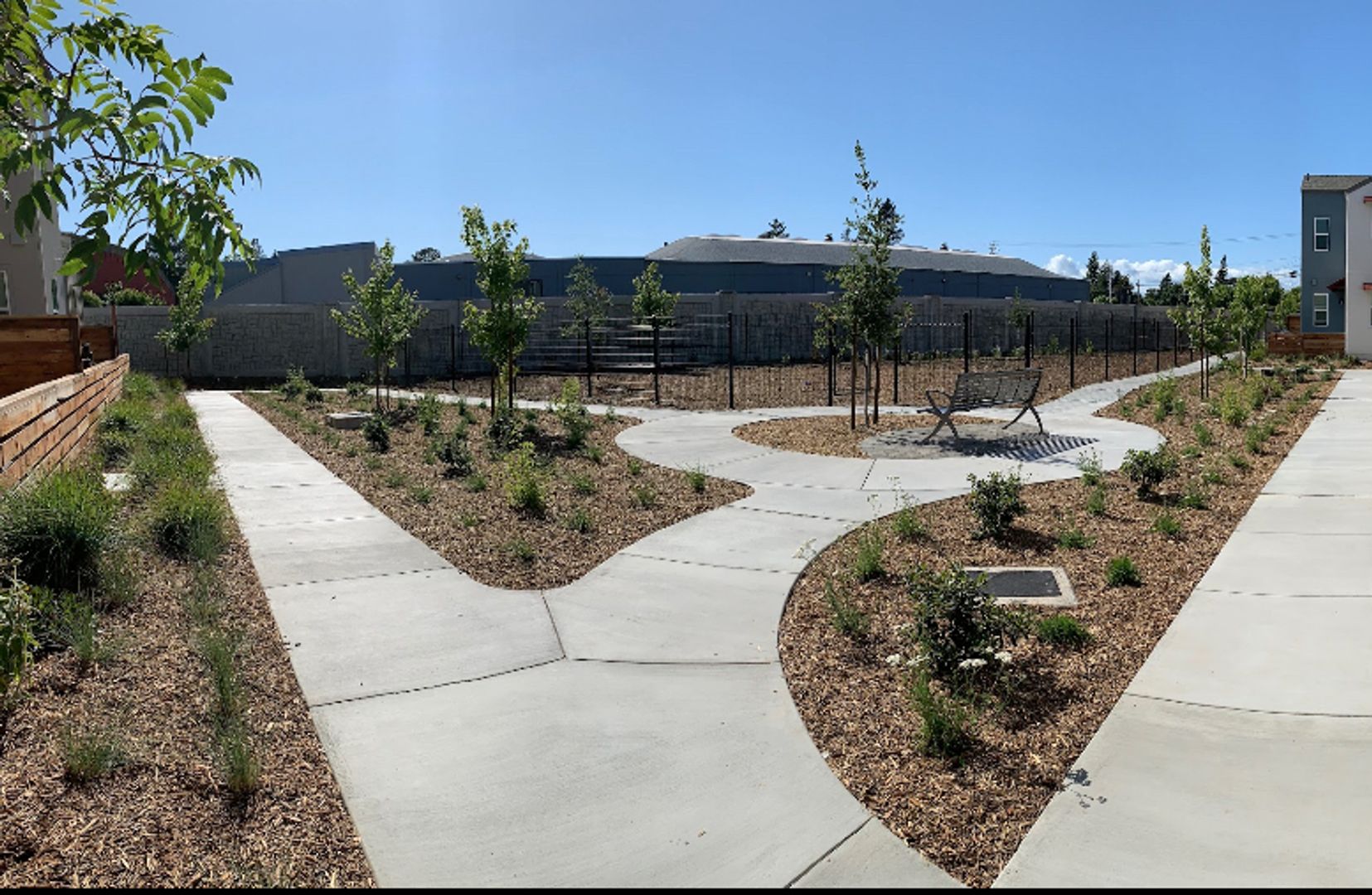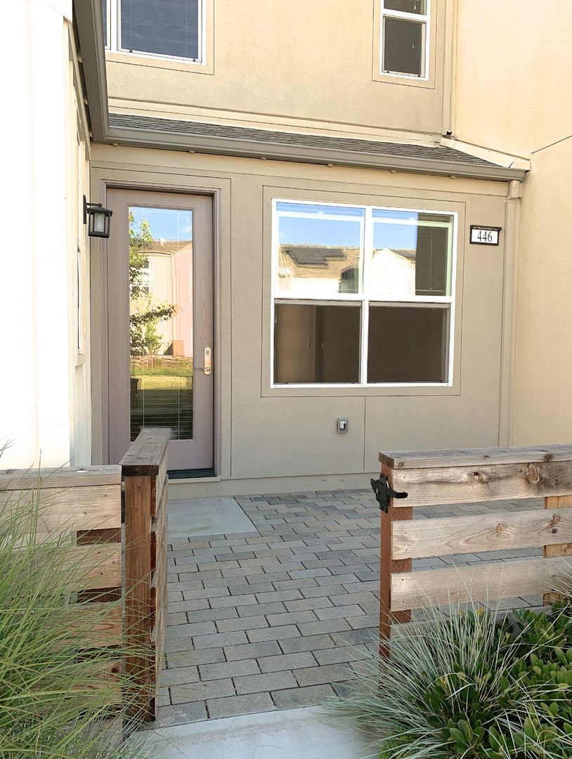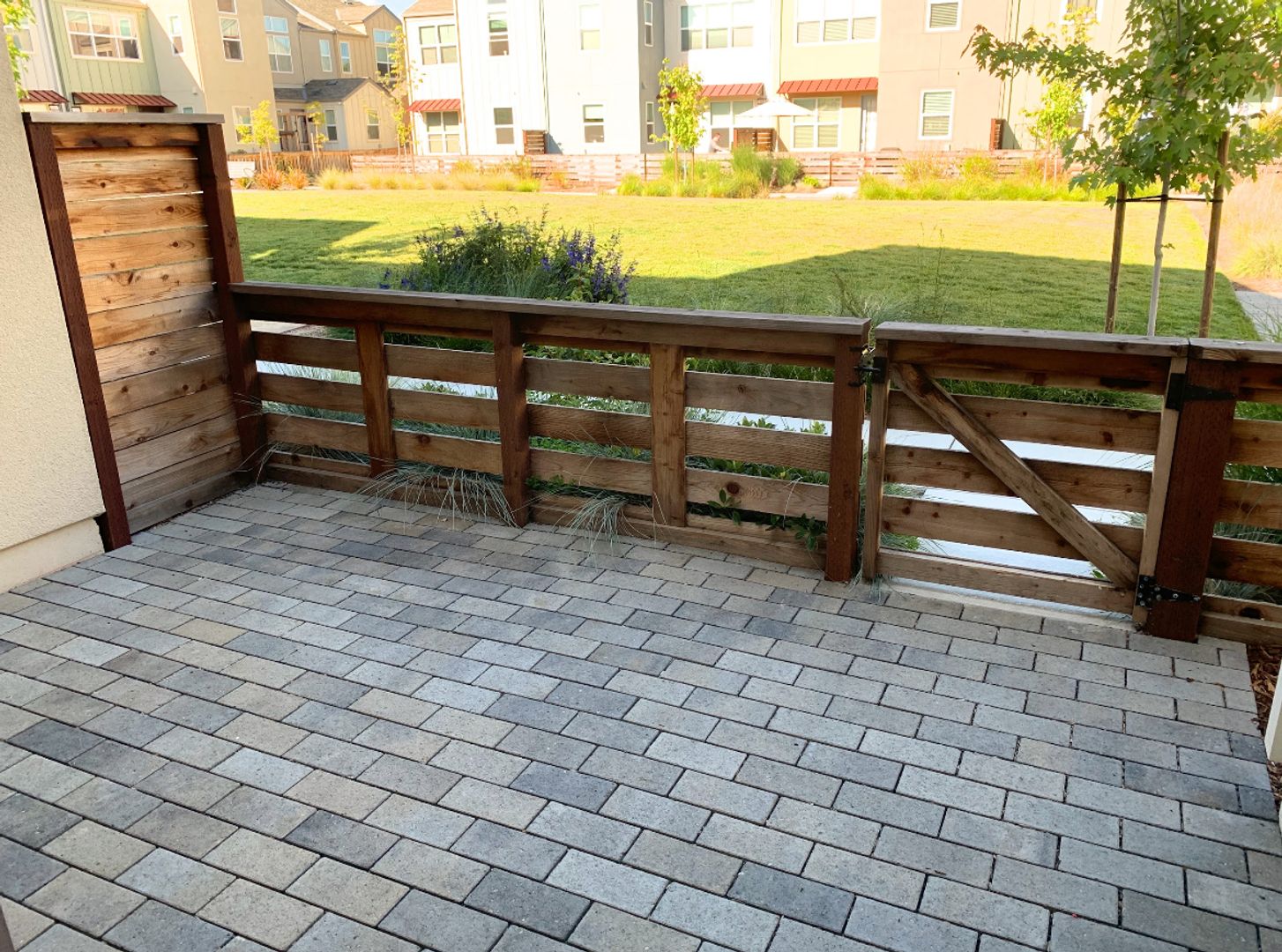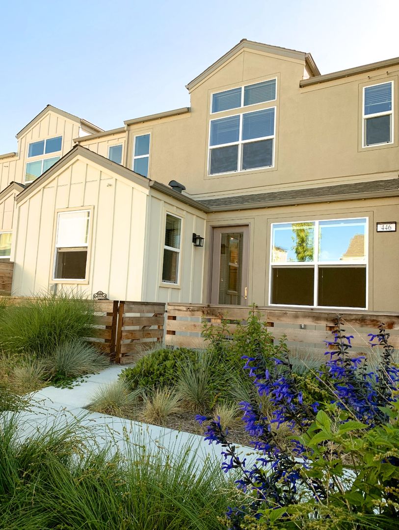A Tri-Pointe locking French door leads to a private patio with direct access to landscaped green space maintained by the HOA. The Village Station community offers five courtyards with open green spaces, picnic areas, bocce ball courts, a playground, and a dog park.