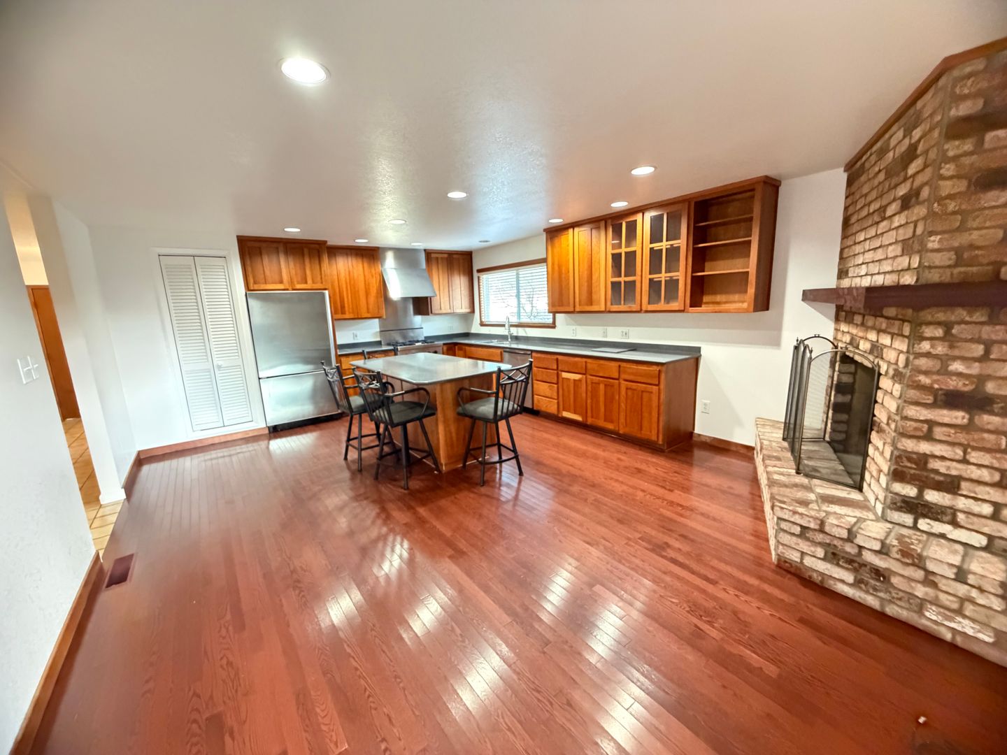 Inside, enjoy both a formal living room and a family room off the kitchen, creating flexible living and entertaining spaces. The kitchen features a large island with seating for four, stainless steel appliances, including a gas range, dishwasher, and refrigerator, and opens nicely to the main living area.