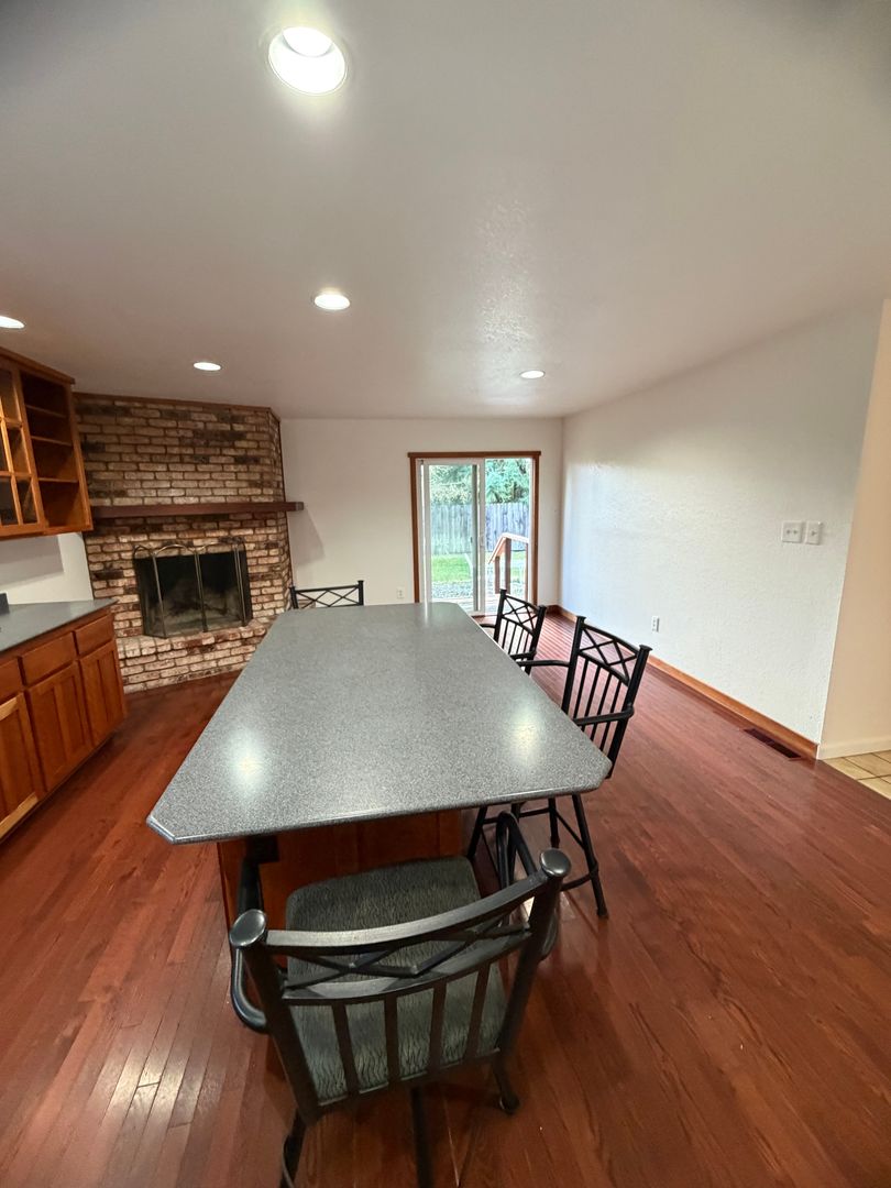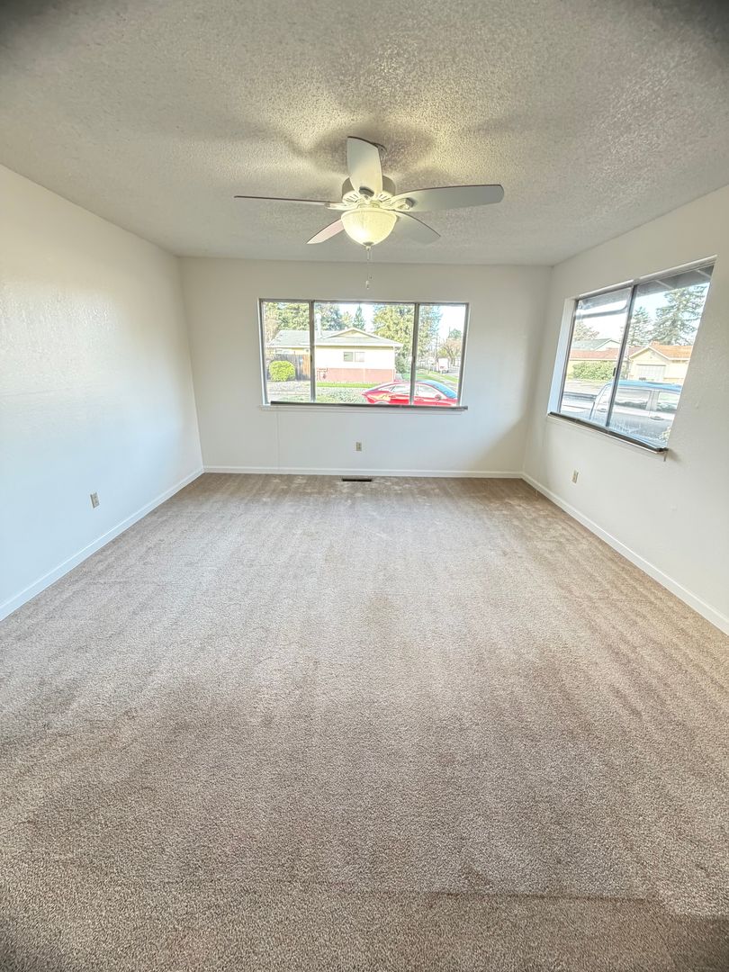 Additional features include newer HVAC, washer and dryer hookups in the garage, and a decorative, non-operational fireplace in the dining room. Step outside to a large backyard, with landscaping included in the rent for easy, low-maintenance living.