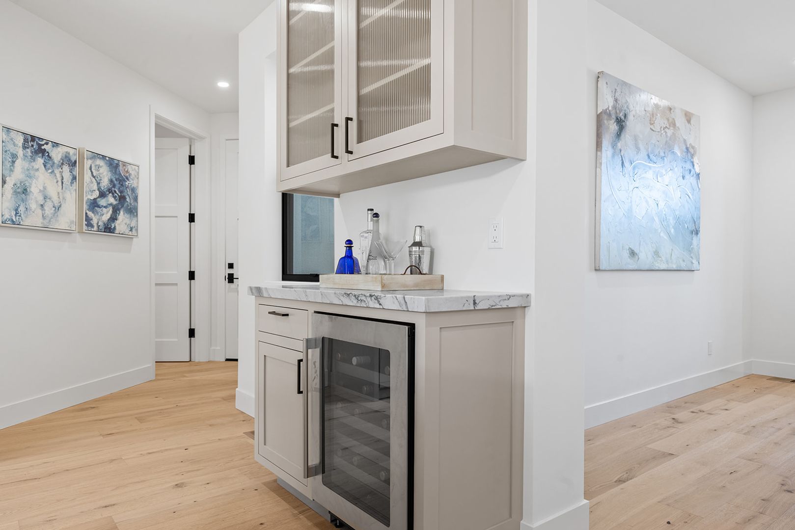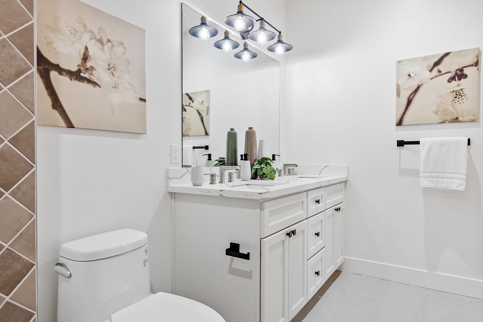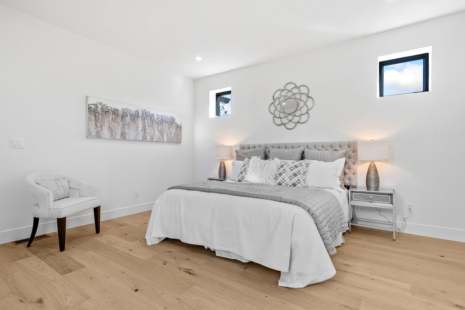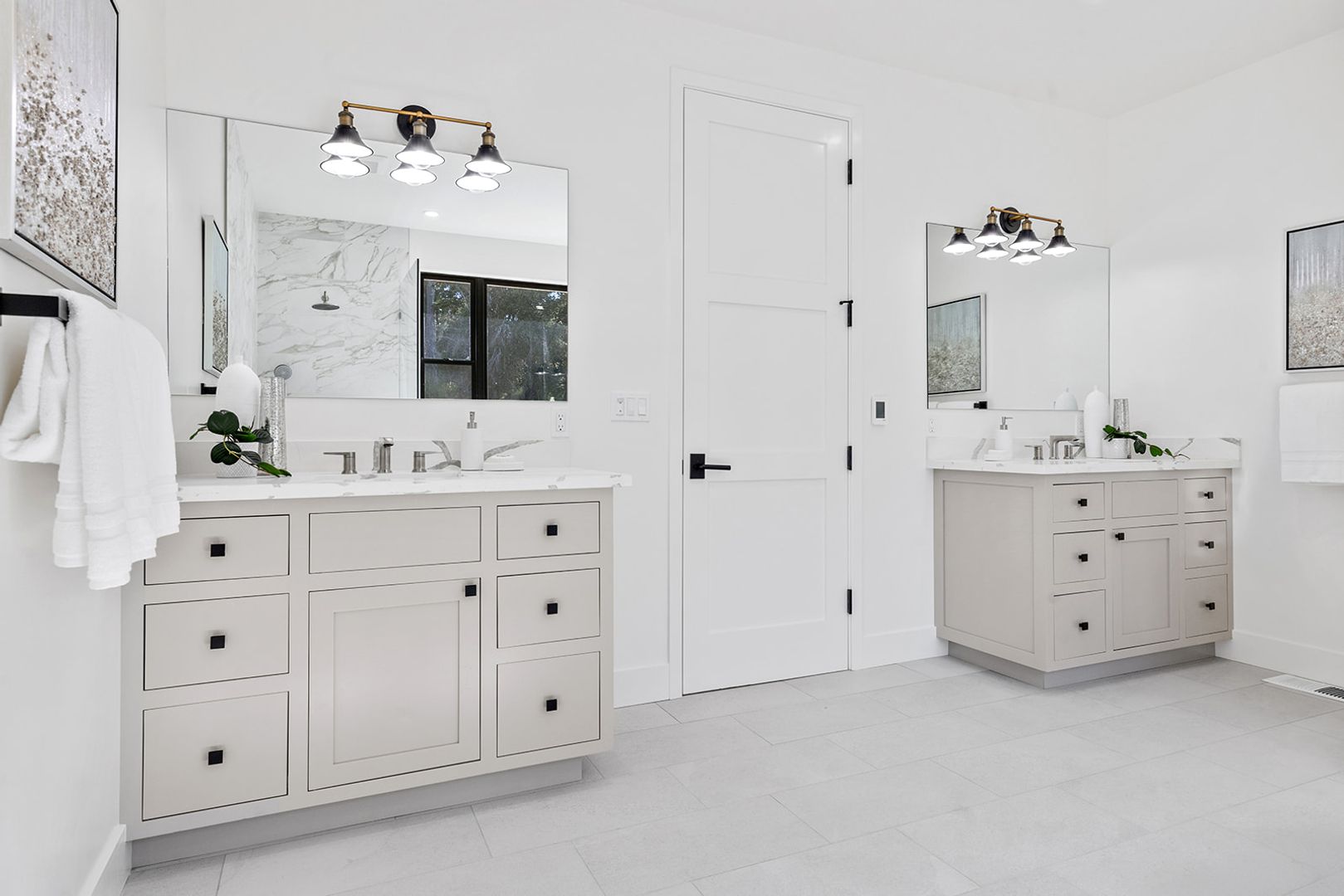The main-level primary suite provides a private retreat with a luxurious feel, while the upper level includes two oversized bedrooms, a guest bathroom, and an additional ensuite bedroom, offering excellent flexibility for guests, family members, or home office needs.